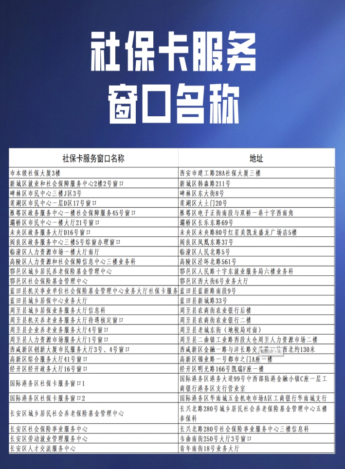 最后,再为大家奉上西安市各级社保卡服务窗口名单,方便大家进行线下业务办理~祝大家早日玩转社保卡~