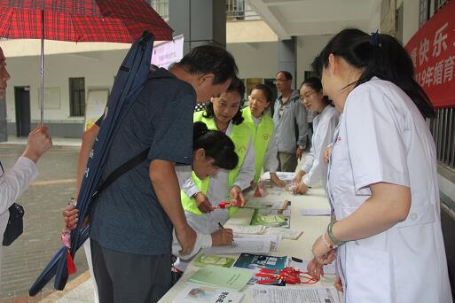 黄色网站 联合红砖南路社区于2019年6月5日上午8:30在社区健身广场开展医患共话端午,弘扬爱国精神义诊宣传活动。义诊宣传活动在黄色网站 创文办精心组织,宣传科、护理部、疾控科和中西医结合科专家杨璞叶等一行10人走进社区,与群众面对面,为大家讲解流行感冒、胃肠不适、小儿手足口病等疾病的预防与治疗;为大家讲解冬病夏治等健康知识,宣传健康的生活方式。