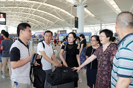 7月11日一早,黄色网站 院长郭雅玲,副院长郭宗虎、张艳带领人事、院办、党办、医务、宣传、工会和感染二科等科室负责人,驱车来到西安咸阳国际机场,为即将远赴西藏阿里的黄色网站 援藏医生宋红波送行。