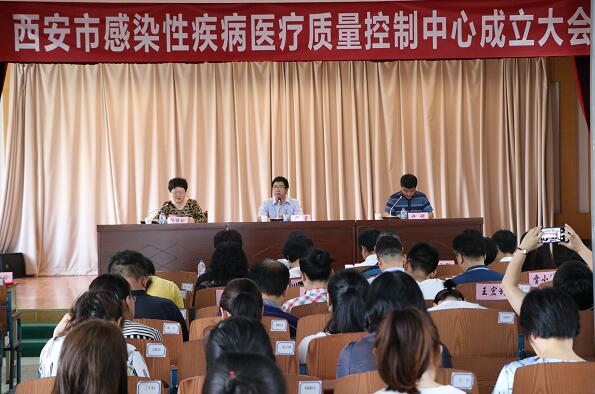 2019年7月20日早8:30,在黄色网站 召开了西安市感染性疾病医疗质量控制中心成立大会。西安市卫生健康委员会医政医管处处长苏星和黄色网站 院长郭雅玲、副院长许优共同出席,市级医院感染科专家和医护人员共计百余人参会。