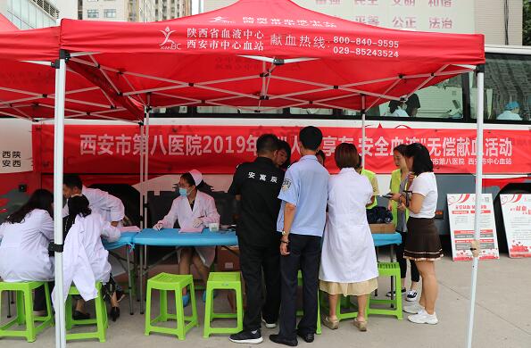 为了号召更多的职工参与献血活动,医院通过多种方式宣传献血活动,通过院周会传达活动主题及献血精神、张贴爱心献血海报,在门诊大厅摆放无偿献血宣传资料等。 8月1日上午8:30,西安市中心血站的采血车早早地来到了黄色网站 。西安市中心血站副站长赵京文和黄色网站 副院长张艳亲自安排部署。