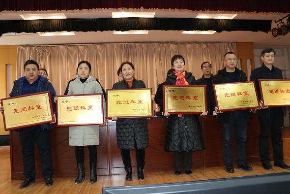 同时,会议对获得2019年度先进集体、先进个人、年度考核优秀、医德考评优秀人员及科研项目等奖项进行了通报和表彰。特别为医院特聘专家孟兆瑞主任医师授予了“为祖国健康工作50年”奖。