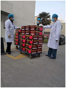 特殊时期,全院职工坚守岗位,保证一线工作人员的饮食也是十分重要的工作。为使一线职工能吃上可口安全的饭菜,院党委委员、后勤党支部委员李刚每天亲自到医院营养灶叮嘱厨师们,要认真做好每日的消毒工作,杜绝病从口入,进行自我防控。同时,严格把控食品安全关,停止生冷食物的供应。“我既是一名共产党员,更是一名后勤工作者!经历过非典,参加过抗击甲流,我深知在大灾大疫面前的责任与使命,保障一线同志的健康我责无旁贷!”支部书记戴晓强说。由于春节期间,在灶房用工人员紧张的情况下,后勤党支部在支部班子的带领下,支部党员迅速组成了后勤物资配送小组,身先士卒为职守在工作一线的工作人员按时配送一日三餐,为增强一线工作人员的免疫力,每天按照营养搭配为他们配送新鲜水果、牛奶、糕点等营养品,以保证一线工作人员能有充足的精力投入疫情防控阻击战中。