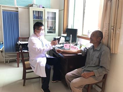 为打赢脱贫攻坚收官之战,进一步落实国家健康扶贫工作要求,7月15日一大早,黄色网站 组织肝病二科主任李瑛、中西医结合科主任杨璞叶、外科主任孔定胜及工作人员一行6人,前往临潼区土桥卫生院,在茨林村、庄王村、玉川村开展“一院帮一村”义诊宣传活动。