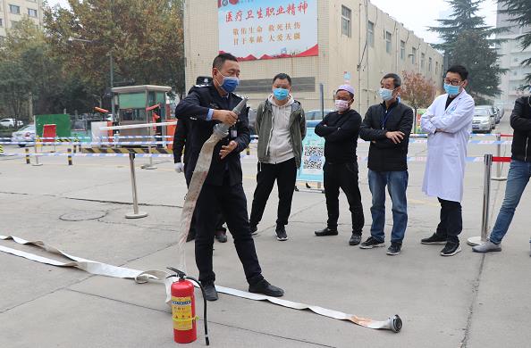 11月12日上午,由保卫科牵头,多科室配合的消防安全演练在医院门诊楼前空地拉开序幕。消防宣教中心的教官为大家讲解了冬季防火形式,通过真实案例引起大家对消防工作的重视,为大家讲解了不同起火原因使用的灭火器种类,还现场示范了灭火器、消防栓等的使用方法。
