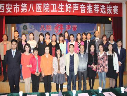 2014年4月18日下午,我院在五楼会议室举行了“八院好声音暨红五月卫生好声音”选拔推荐赛。此次比赛的参赛选手来自我院各个科室的老中青三代,比赛曲目也囊括了通俗、流行等多种唱法,充分展现出我院职工良好的精神风貌和活跃的医院文化氛围。为了让比赛更加公平公正,我们邀请了院党委书记、院长担任评委,同时,还邀请了来自工会、共青团的代表和热爱文艺、关心医院建设的院前任党委书记担任评委一职。