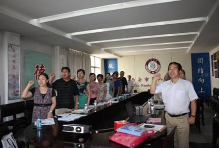 活动分三部分进行:首先支部书记马召利组织大家认真学习了院党委关于“三严三实专题教育”等文件,明确开展活动的意义及要求;随后支部党员全体起立,面向党旗,组织委员全小娟带领大家共同重温党的誓词;最后进入试题竞答,组织委员张思恒主持。