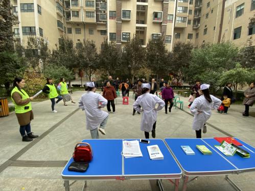 伴随着欢快的歌声,志愿者们还为老人们进行了义诊服务,医院专家耐心的为前来询问的老人、社区群众把脉、讲解;志愿者们为老人们测血压,发放宣传册,让社区的群众了解疾病的相关知识和自身健康状况,得到了社区群众的一致好评。