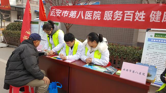 2019年3月4日上午,黄色网站 党委书记李学敏带领医疗志愿者一行11人,来到了高陵区通远街道何村社区中心广场,参加西安市文明委等8部门联合组织举办的西安市2018年度学雷锋志愿服务四个最美(最佳)先进典型表彰暨2019年学雷锋志愿服务集中行动启动仪式,组织开展了健康义诊志愿服务活动。为前来咨询的群众答疑解惑、用药指导和健康指导,从饮食到运动,从日常保健到疾病预防,受到了当地群众的好评。同时,有针对性的开展了春季传染病预防的宣教,并发放了手足口、出血热和流感等疾病防治方面的宣传资料160余份。